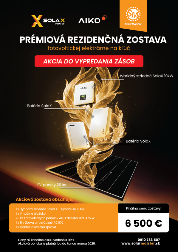 Nepremeškajte jedinečnú ponuku a získajte fotovoltiku za neopakovateľnú cenu. Vybrať si môžete verziu s batériami alebo s virtuálnym úložiskom. Pozor ceny sú platné iba do vypredania zásob!